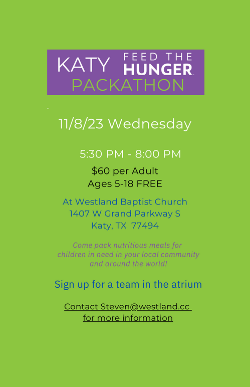 Your work will go toward providing more and more at-risk children a physical meal every day of the school year, and with that, the emotional and spiritual food that comes from being nurtured by our Christian partners all around the world. Feed the Hunger packets are designed to help malnourished children and families, both overseas and right here in our Katy community. It's the most fun you will ever have while wearing a hair-net!!! See more information click https://www.feedthehunger.org/katy/